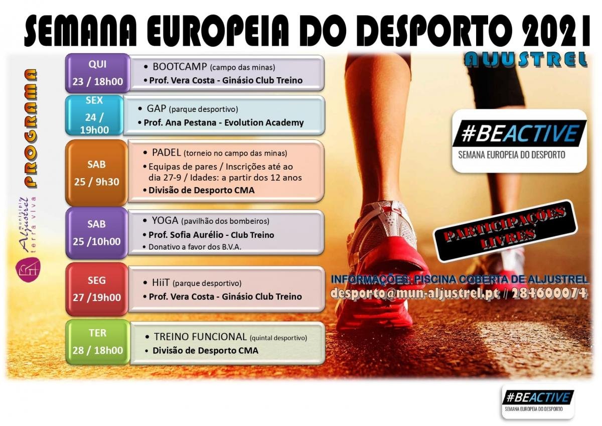 “A Semana Europeia do Desporto (SED) é uma iniciativa desenvolvida pela Comissão Europeia e organizada em Portugal pelo Instituto do Desporto e Juventude I. P. Esta iniciativa tem como objetivo promover o desporto e a atividade física junto de todos os cidadãos. As aulas serão monitorizadas pelos técnicos de desporto da autarquia, mas também de clubes e do movimento associativo do concelho, sensibilizando os praticantes para as enumeras vantagens da prática desportiva”, destaca a Câmara de Aljustrel.