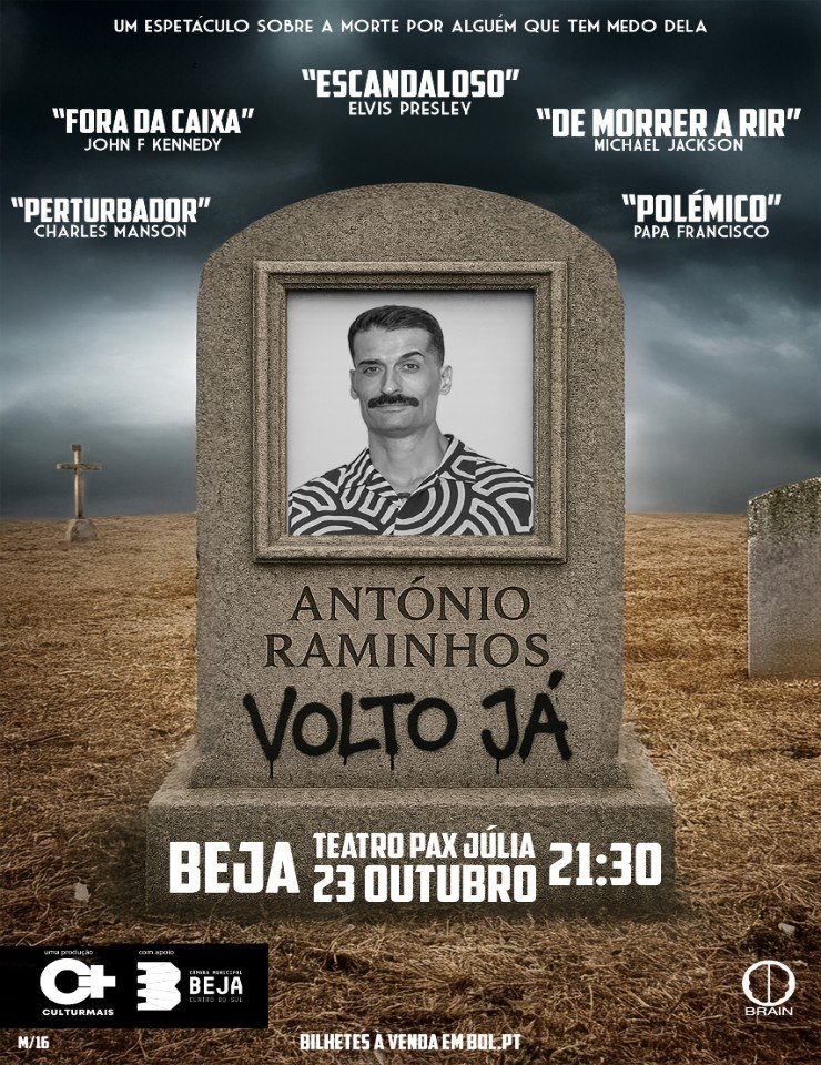 O humorista António Raminhos apresenta esta quinta-feira, 23 de outubro, às 21h30, no Auditório do Pax Julia – Teatro Municipal de Beja, o seu novo espetáculo “Volto Já.”