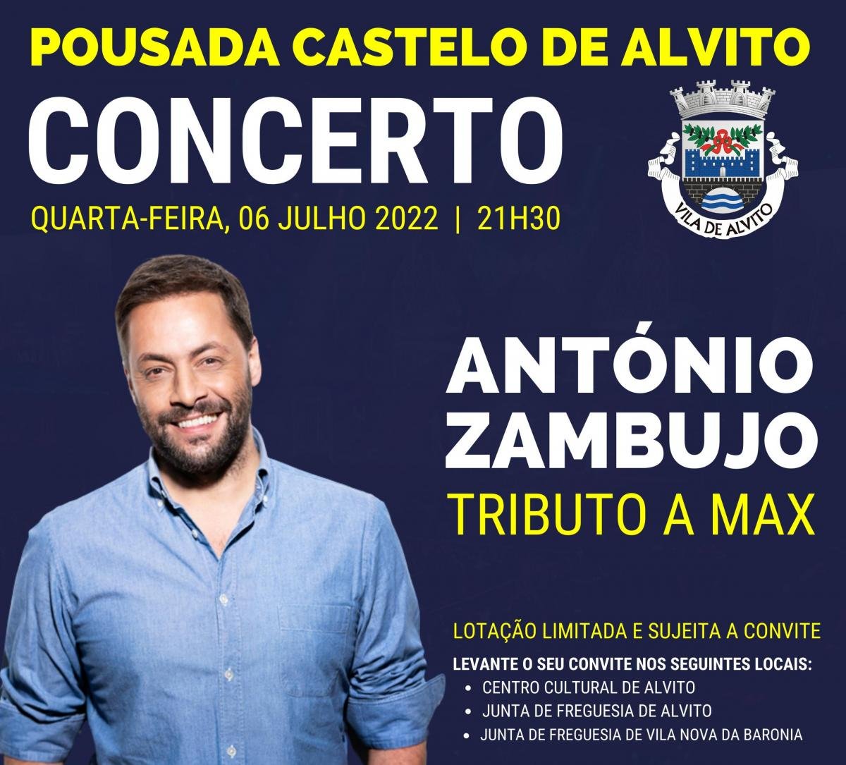 O músico António Zambujo irá oferecer um concerto ao município de Alvito, nesta quarta-feira, 6 de Julho, pelas 21h30 na Pousada do Castelo de Alvito.