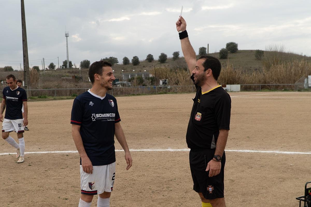 A AF Beja explica que “num lance na área houve mão na bola e, no momento em que o árbitro Alberto Alho apontava para a marca de grande penalidade, Luís Simões “confirmou perante todos os jogadores a correta decisão”, tal como descreve o juiz da partida no relatório de jogo. A atitude do jogador evitou contestação e valeu a amostragem do Cartão Branco”.
