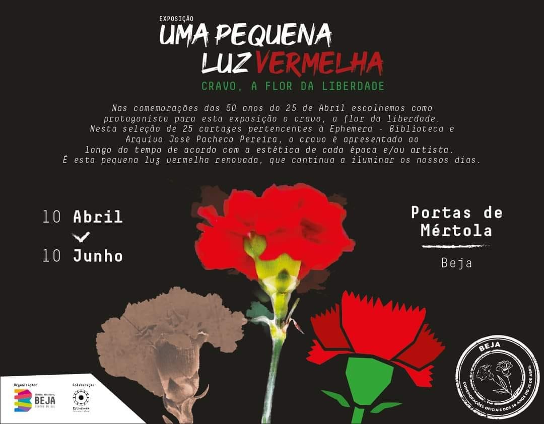 No âmbito dos comemorações municipais do 50.⁰ Aniversário do 25 de Abril no concelho de Beja ficarão patentes a partir das 17h30 de 10 de abril e até 10 de junho, duas exposições em espaço público, uma com capas e notícias do “Diário do Alentejo” dos anos de 1974 e 1975 e outra da “Associação Cultural Ephemera – Biblioteca e Arquivo de José Pacheco Pereira” alusiva ao cravo, símbolo maior da revolução portuguesa de há 50 anos.