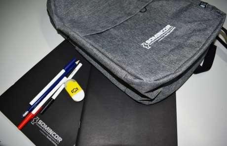 Cada kit será composto por uma mochila com conetor USB, por dois cadernos A4 (quadriculados e de linhas), por um lápis de carvão com borracha, por três canetas de escrita (azul, preto e vermelho) e por uma borracha-afia.