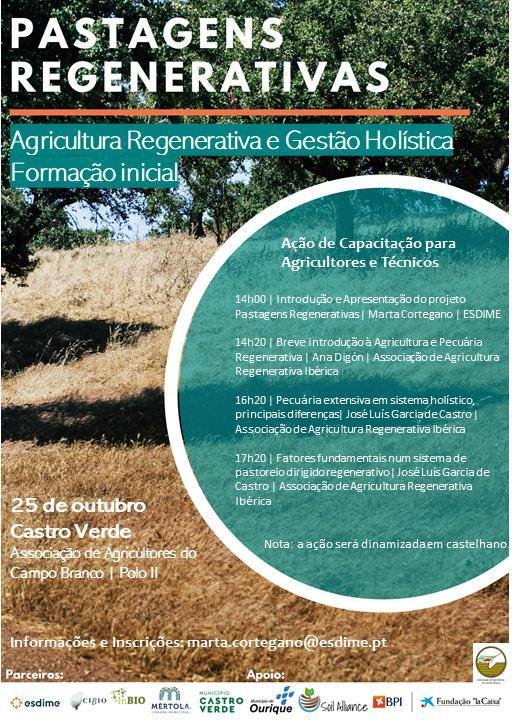 No próximo dia 25 de outubro, segunda-feira, a ESDIME promove uma ação de formação inicial em Agricultura Regenerativa e Gestão Holística em Castro Verde.