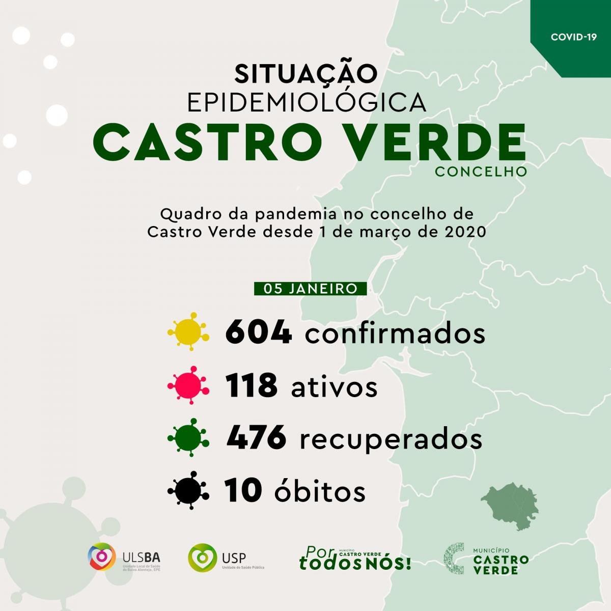 No concelho de Castro Verde há 118 casos ativos de Covid-19, avança o município.