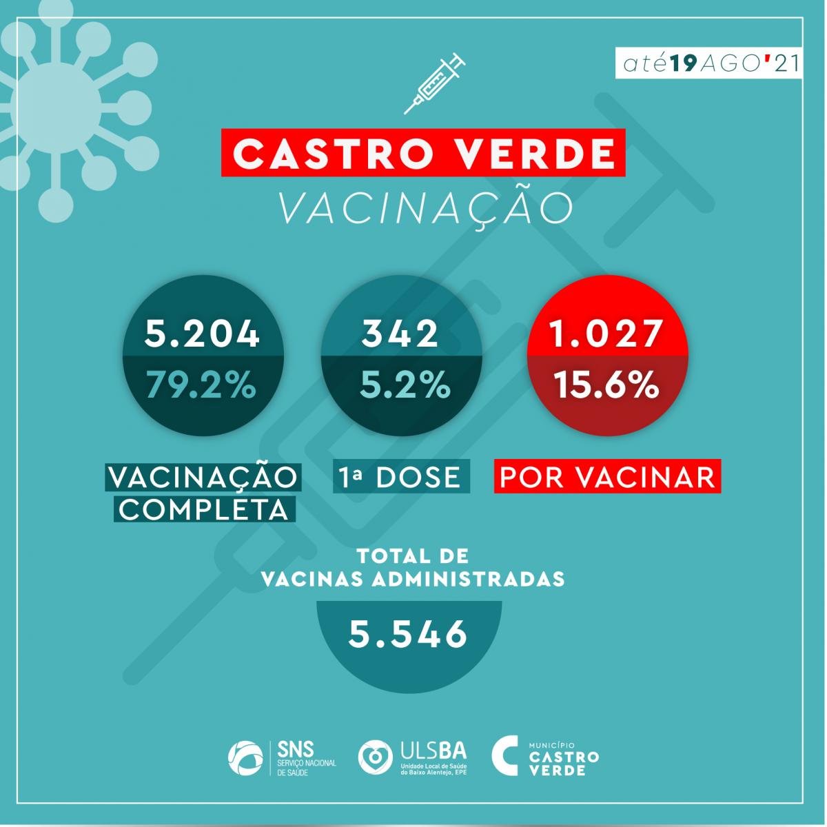 No concelho de Castro Verde, 5.204 pessoas já têm a vacinação completa contra a COVID-19, o que corresponde a 79,2% da população, informa a autarquia.