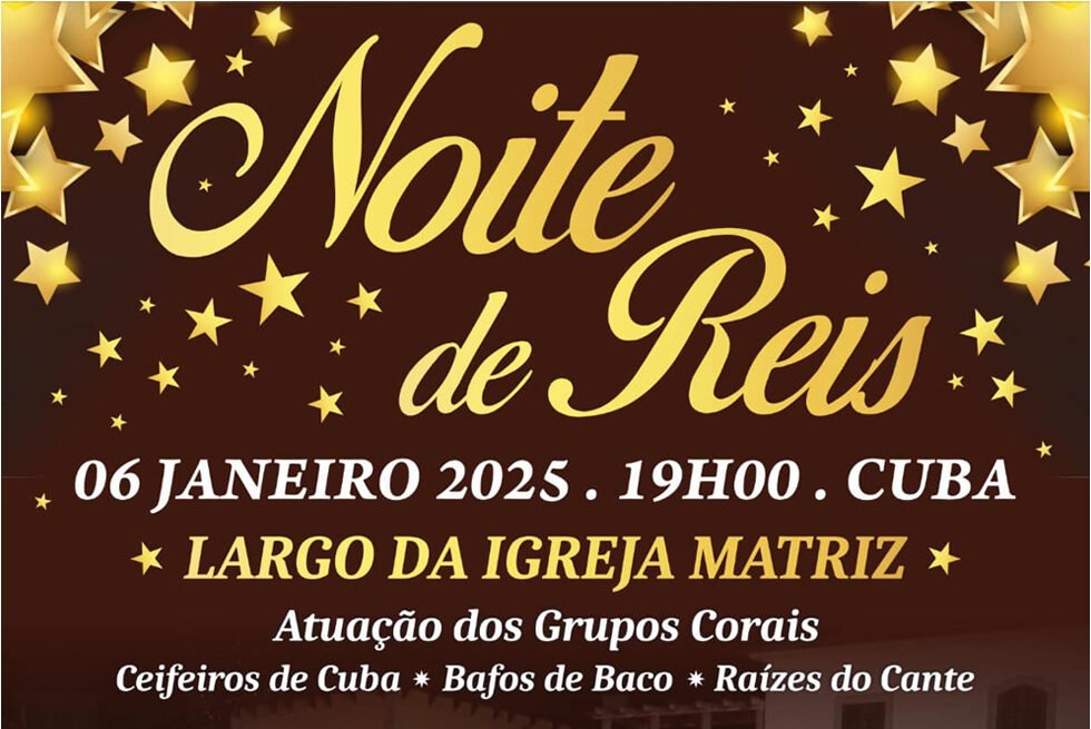 Para celebrar a tradicional Noite de Reis, hoje, dia 6 de janeiro, a Junta de Freguesia de Cuba convida a população a celebrar no Largo da Igreja Matriz, a partir das 19h00 com bolo rei e vinho licoroso.
