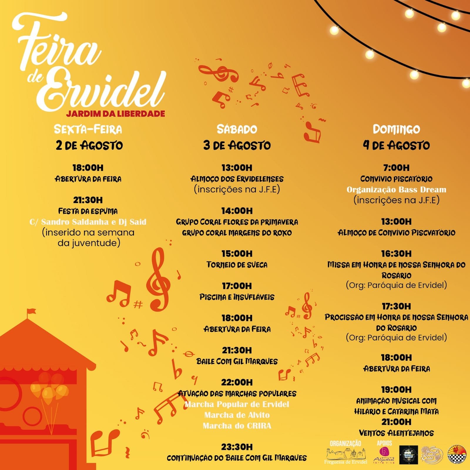 Este sábado realiza-se o almoço dos ervidelenses, às 13 horas, Baile com Gil Marques, às 21h30 e atuação das Marchas Populares de Ervidel, Alvito e CRIRA, de Aljustrel.