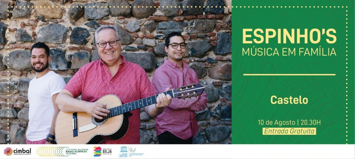 Cultura Espinho’s música em Família para ver esta noite no Castelo de Beja Por Rádio Castrense - 10 de Agosto, 2021 0 377 FacebookTwitterWhatsAppEmailImprimir Hoje, dia 10 de agosto, decorre um espetáculo musical com Luís, Bernardo (Buba) e Eduardo Espinho no Castelo de Beja pelas 20h30. Este evento está inserido no Festival BA e é organizado pela Comunidade Internacional do Baixo Alentejo (CIMBAL).