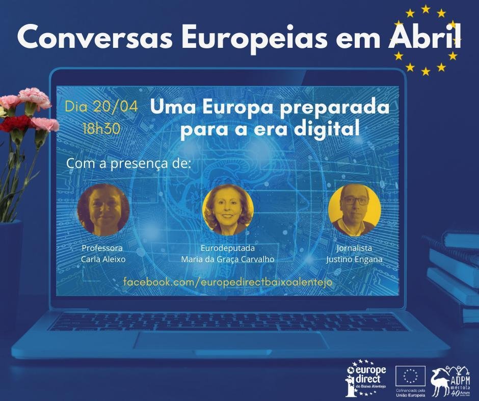 O Centro de Informação Europe Direct do Baixo Alentejo vai dinamizar, durante a segunda metade deste mês, a iniciativa Conversas Europeias em Abril. Esta ação, que decorrerá na página de Facebook do Centro arranca hoje com a primeira de três conversas.