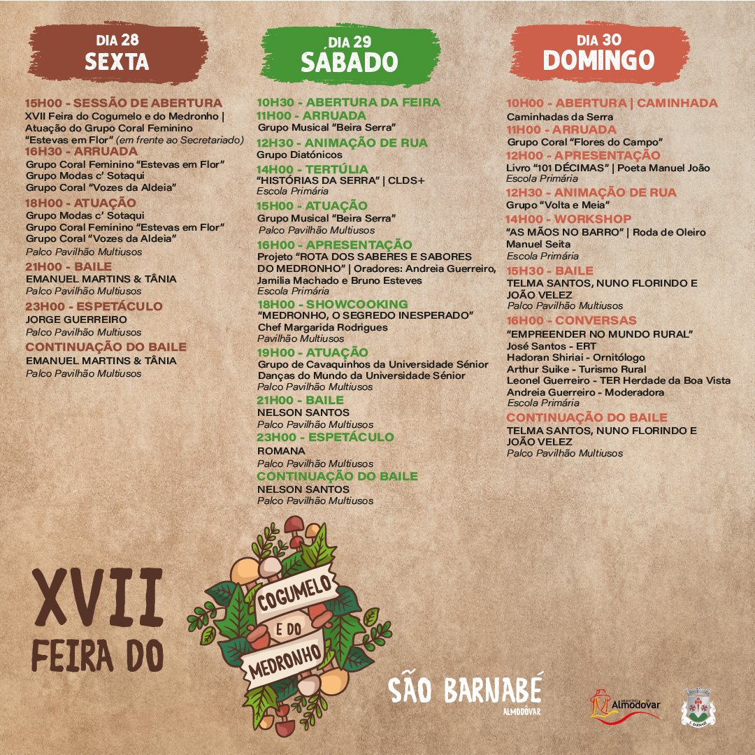 A câmara de Almodôvar e a Junta de Freguesia de São Barnabé promovem a partir desta sexta-feira e até domingo a XVII edição da Feira do Cogumelo e do Medronho, cujo tema central este ano é “Potencialidades da Serra”.