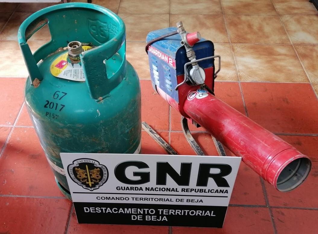 O Comando Territorial de Beja, através do Núcleo de Proteção Ambiental de Beja, apreendeu, ontem, um canhão a gás para espantar aves numa exploração agrícola, no concelho de Beja.