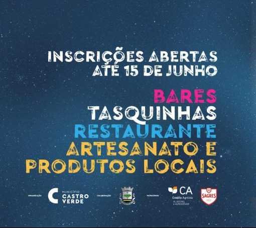Decorre até ao dia 15 de junho de 2022, o período de inscrições para exploração de bares, tasquinhas, bancas de artesanato e produtos locais e para um espaço de restauração nas Festas de Castro 2022, que se realizam de 1 a 3 de julho, no Largo da Feira, em Castro Verde.