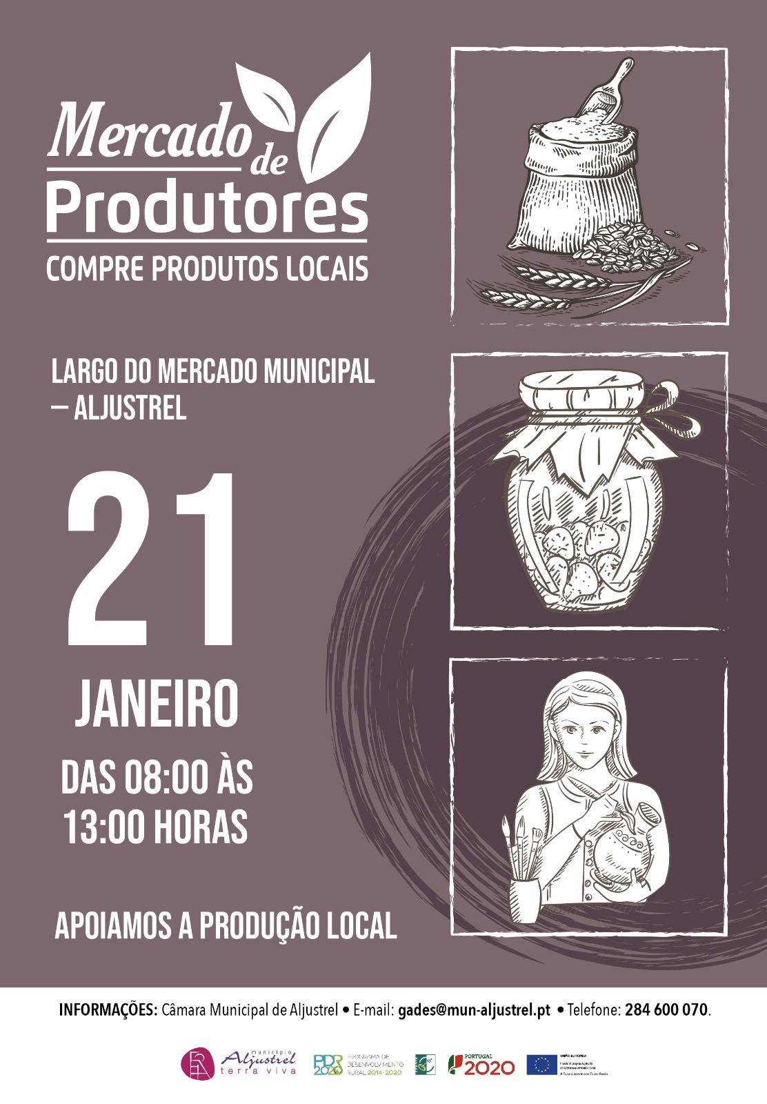 O Mercado de Produtores regressa a Aljustrel neste sábado, dia 21. As bancas de venda, onde se destacam os produtos agrícolas e agroalimentares, mas também as artes artesanais e tradicionais, vão instalar-se no largo junto ao Mercado Municipal de Aljustrel.