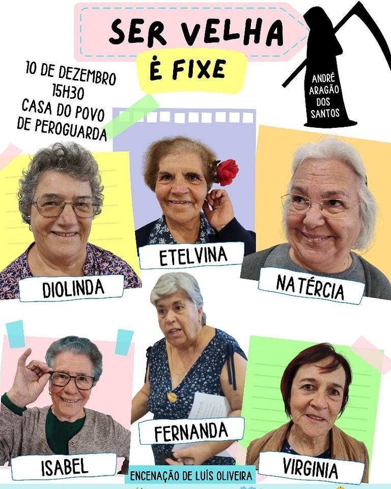 Este sábado, a partir das 15h30, a Casa do Povo de Peroguarda recebe o espetáculo de Teatro “Ser Velha é Fixe”. Após o teatro “haverá ainda um lanche e música com Rui Chora, Edgar Baleizão e Fernando Candeias” avança a autarquia de Ferreira do Alentejo.