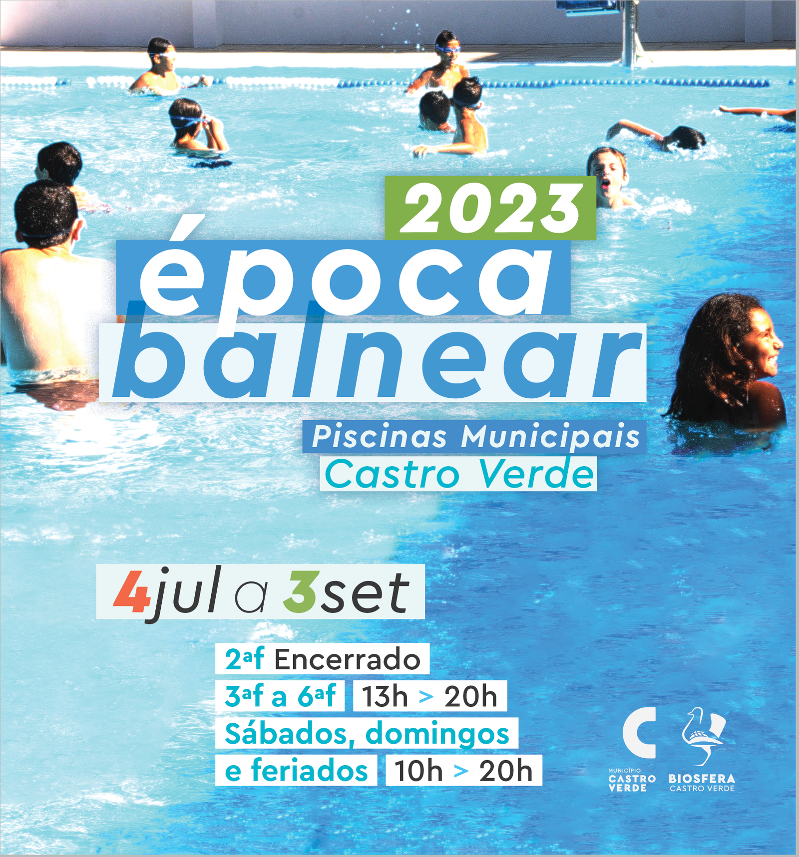 Decorre entre 4 de julho e 3 de setembro, a Época Balnear 2023 nas Piscinas Municipais de Castro Verde, que “este ano terá um calendário mais reduzido, devido à intervenção que esta infraestrutura sem vindo a ser alvo desde o final de 2022”, e que tem como finalidade “a melhoria da eficiência energética do espaço”, esclarece a autarquia de Castro Verde.