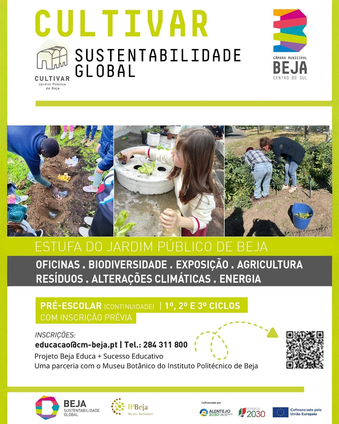 O projeto é cofinanciado pelo Alentejo 2030, Portugal 2030 e pela União Europeia, no âmbito do compromisso municipal com a sustentabilidade global e a cidadania ambiental ativa.
