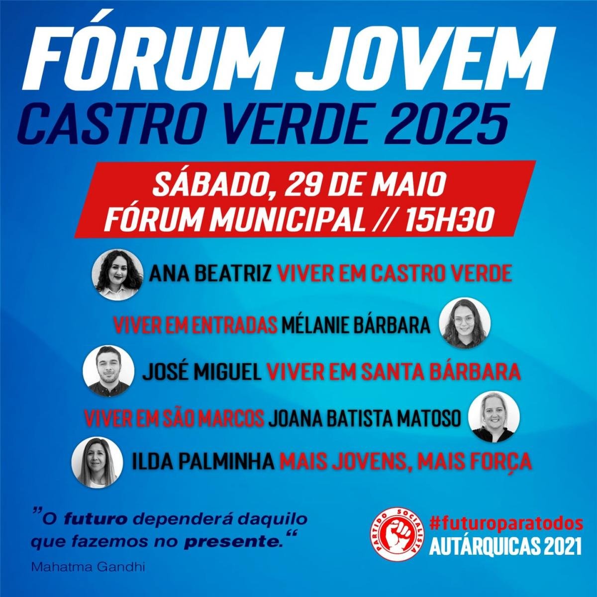 A candidatura do PS no concelho de Castro Verde às Eleições Autárquicas 2021, anunciou que promove durante a tarde este sábado, 29 de maio, um Fórum Jovem para refletir e debater sobre o futuro do concelho.