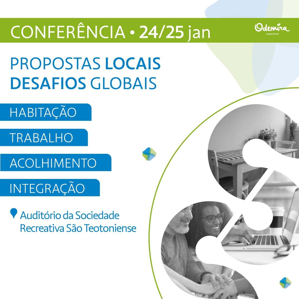 Propostas Locais para Desafios Globais: Habitação, Trabalho, Acolhimento e Integração” é o tema da conferência que o Município de Odemira irá promover, nos dias 24 e 25 de janeiro, na Sociedade Recreativa S. Teotoniense, em São Teotónio.