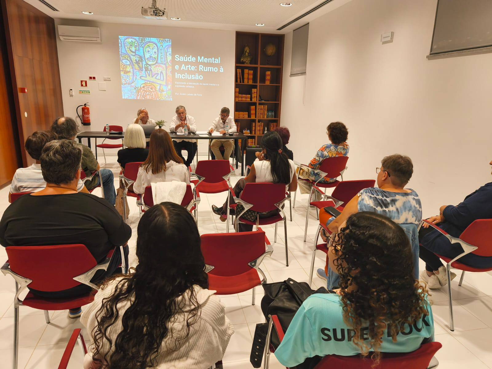 A sessão foi dirigida por Álvaro Lobato de Faria, e teve como principal objetivo refletir sobre o papel da arte enquanto instrumento de inclusão e promoção da saúde mental. O encontro reuniu participantes de diferentes áreas, num espaço de partilha e diálogo aberto sobre a importância da criatividade no equilíbrio emocional e na integração social.