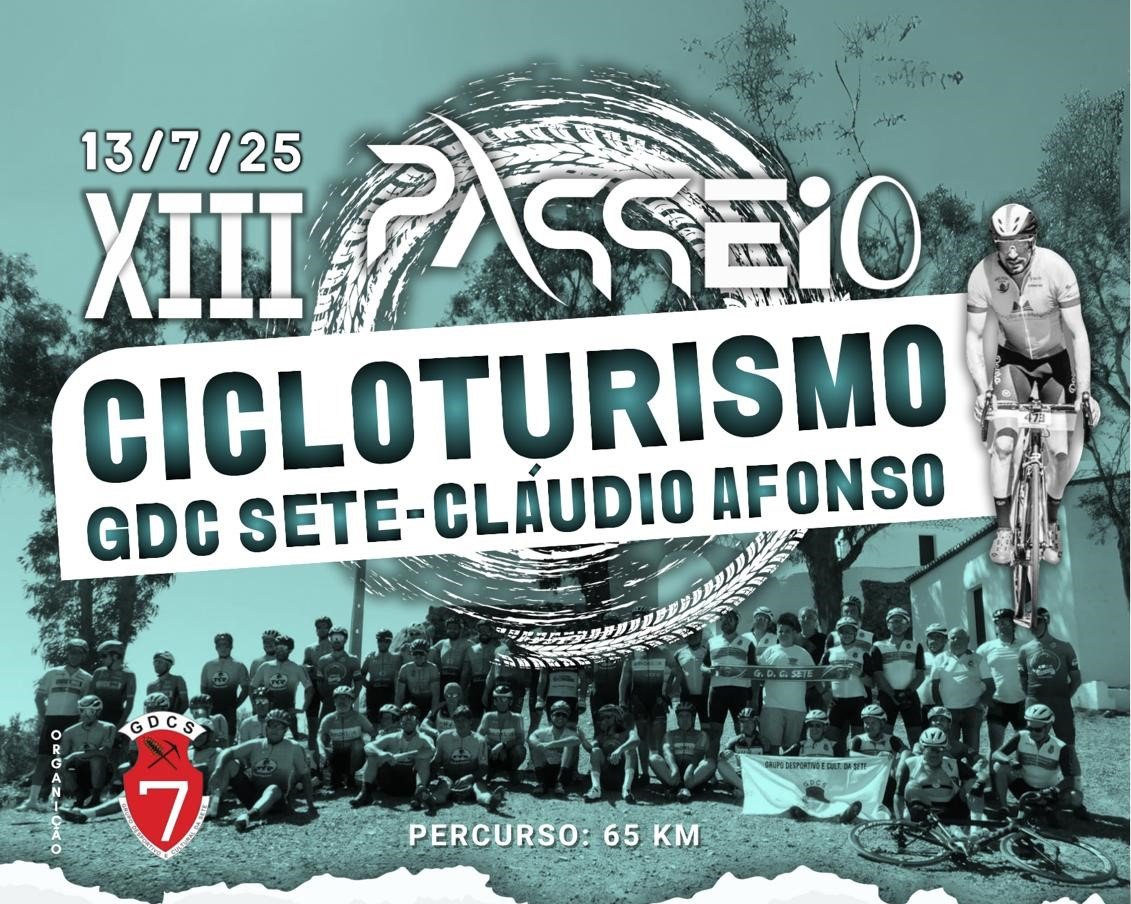 O núcleo de Cicloturismo do Grupo Desportivo e Cultural da Sete , está a organizar o já tradicional passeio anual de cicloturismo, denominado como “13° Passeio de Cicloturismo do GDC Sete “Cláudio Afonso “, nome este em homenagem ao nosso membro, vítima mortal de atropelamento em 2024 enquanto praticava esta modalidade.